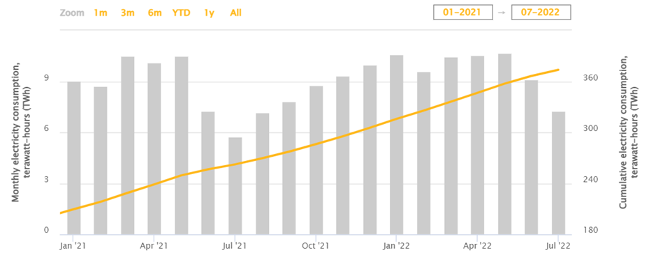 Being the first and most well known project to date, Bitcoin has caused blockchain to be associated with a speculative cryptocurrency that uses a large amount of power. Indeed, there's no denying that the Bitcoin blockchain is energy intensive. Estimates by Cambridge University place its electricity use at 94.5 terra-watt hours a year- equivalent to more than the annual electricity use of Portugal, Chile or Belgium. Total electricity consumption by Bitcoin continued to grow to over 360 TWh.