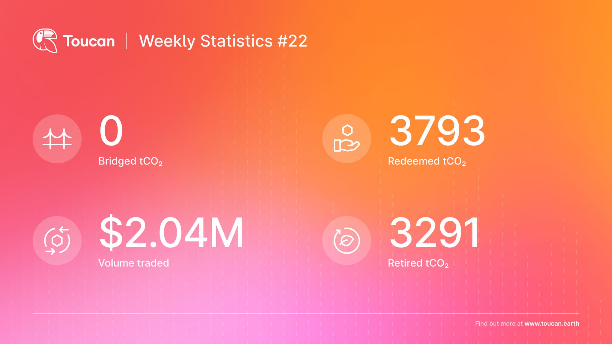Toucan Protocol is building carbon market infrastructure to finance the world's best climate solutions. These are our on-chain stats from 12- 19.06.22: