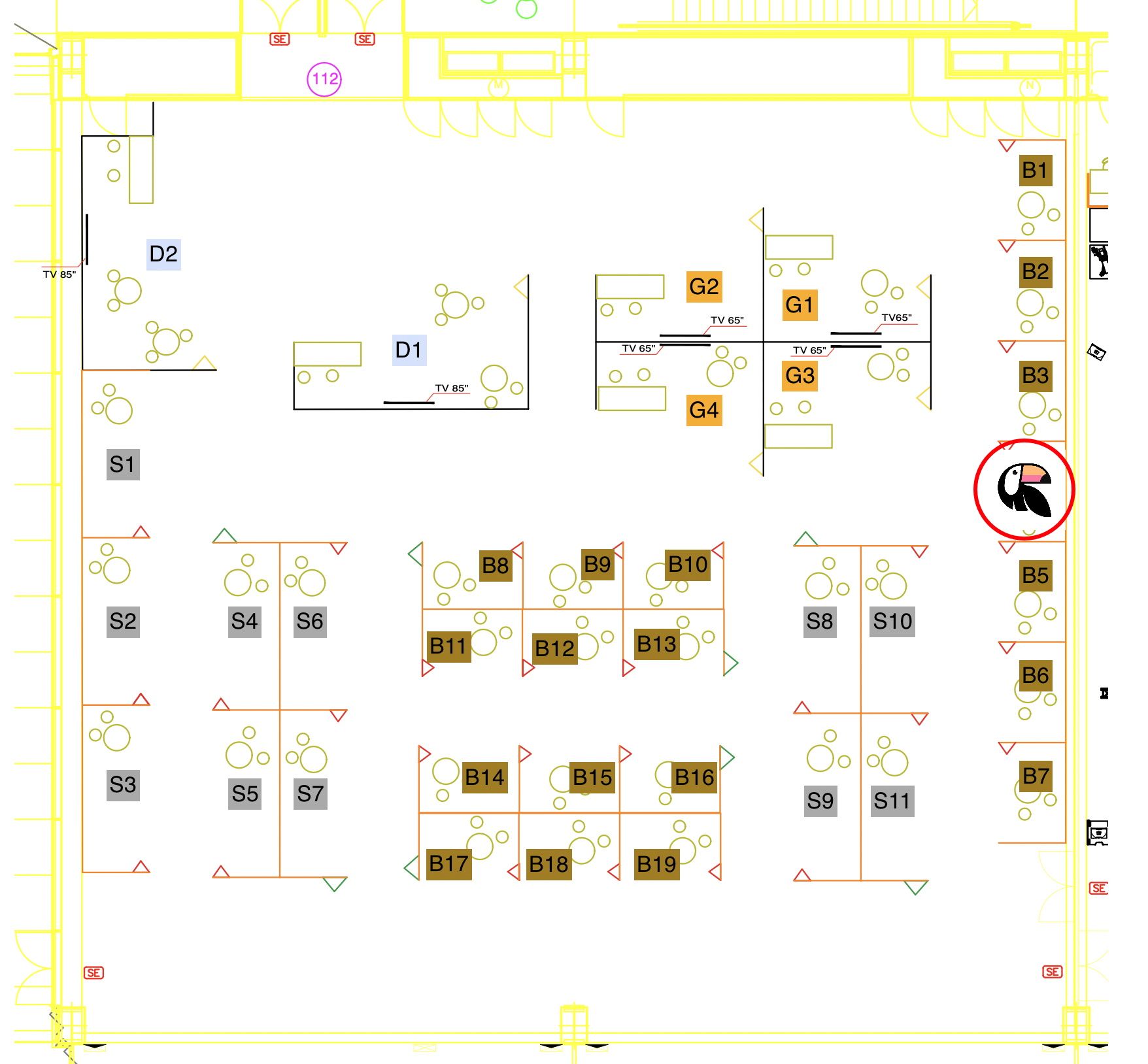 - Toucans at our booth at the venue (scroll down to find out where exactly)