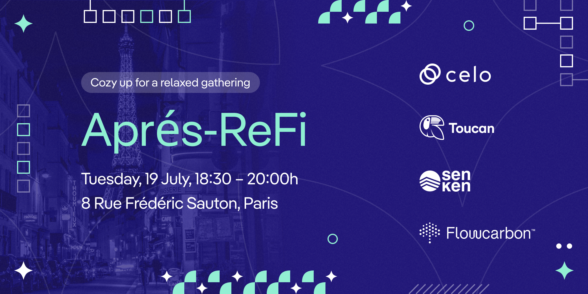 We're co-hosting with Senken, Flow & Celo, right after day 2 of the Celo Connect Salon.